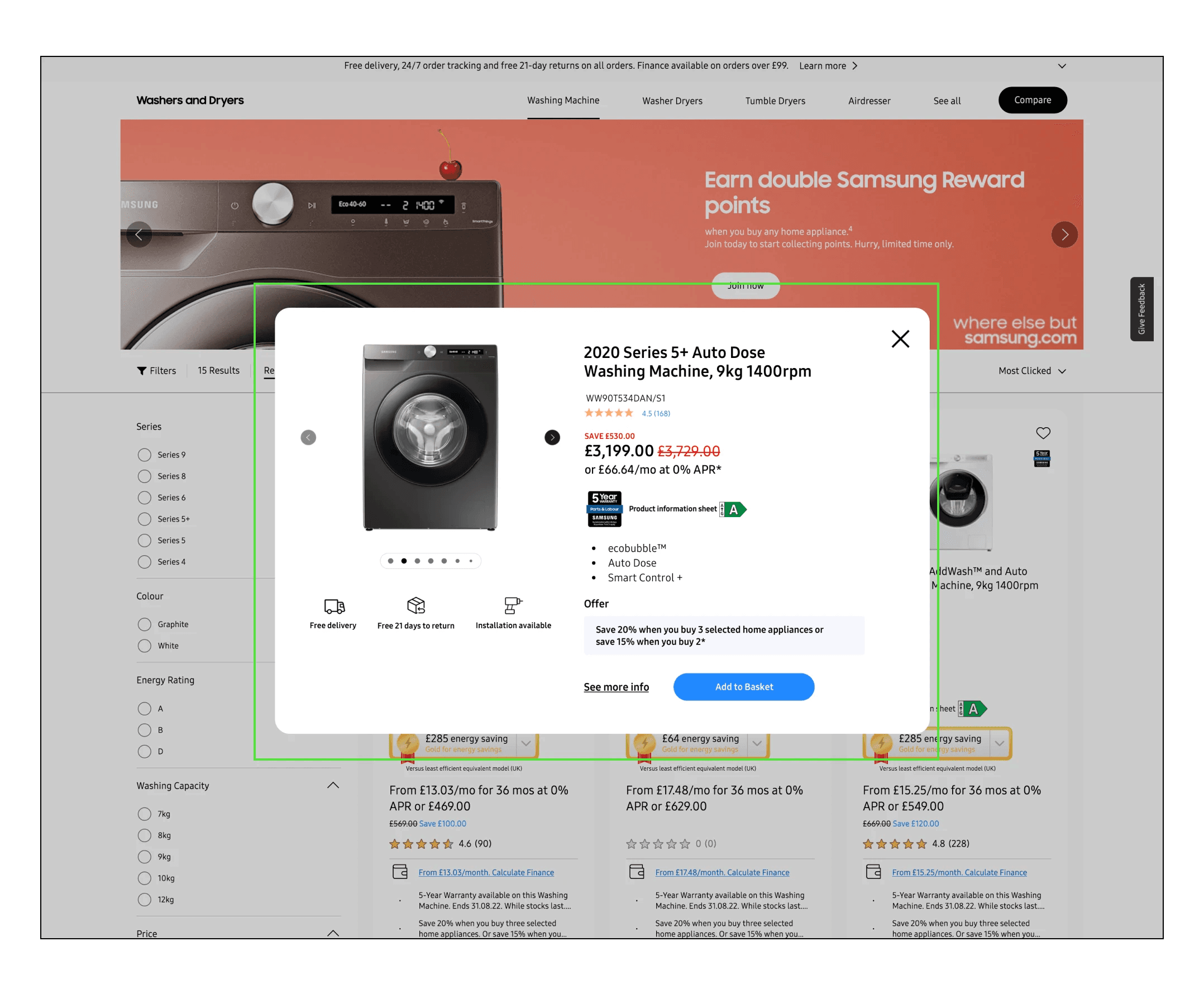 To enhance the browsing experience and provide quick access to product details, I implemented a product quick view pop-up feature on the Samsung website. This feature allows customers to get a glimpse of product information without leaving the current page. By incorporating a quick view button or icon on product listings, customers can simply hover to open a pop-up window that displays essential product details. This includes features such as product images, descriptions, specifications, and pricing. The product quick view pop-up feature saves customers time and effort by eliminating the need to navigate to a separate product page for each item of interest. It provides a convenient way to preview multiple products, compare details, and make more informed purchasing decisions.